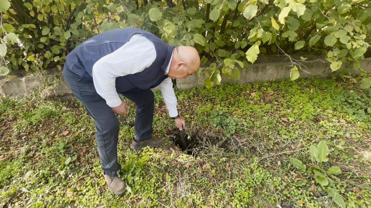 Bahçede yaklaşık 1 metre derinliğinde obruk oluştu. Bölgede ilk kez oluşan obruklar nedeniyle çevre halkı bir hayli endişeli.