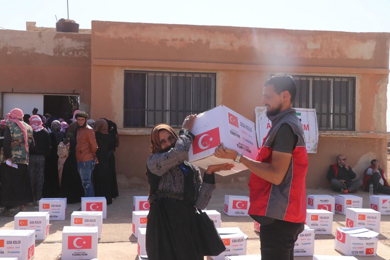 Sadakataşı, Suriye’de yardım çalışmalarını sürdürüyor. Süveyda kırsalında bulunan Sadakataşı ekibi 4 bin aileye içerisinde un, şeker, çay, tuz, pirinç, sıvı yağ, konserve gıdalar, mercimek, bulgur ve salça bulunun gıda kolisi dağıtımı gerçekleştirdi.