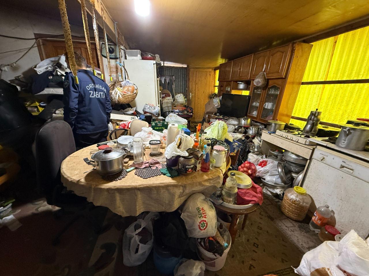 Trabzon’da 3 evden tonlarca çöp çıktı