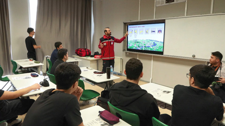 Deprem tatbikatında ‘Çök, kapan, tutun’ şeklinde deprem sırasında bulunulması gereken durum ve yapılması gerekenler anlatıldı. Öğrenciler ise eğitmenlerden ‘Çök kapan tutun’ pozisyonunu uygulamalı olarak öğrendi. Senaryo gereği deprem sırasında sirenler çalarken, sınıflardaki öğrenciler öğretmenleri eşliğinde merdivenlerden inerek okul bahçesinde toplandı. Deprem riski geçinceye kadar öğrenciler öğretmenleriyle bahçede beklemeye devam etti.